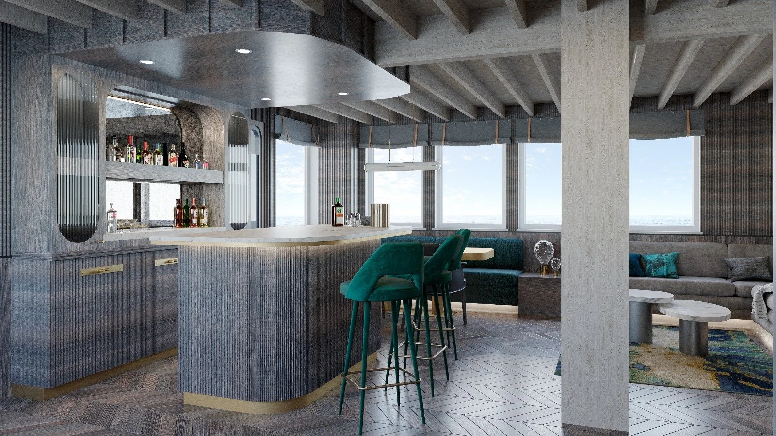 At the bar with a compass that would help you find the perfect drink, on the sun deck to turn the commands to order your champagne, and on the star bed to buy a star to make it memorable and watch the stars with a constellation app.